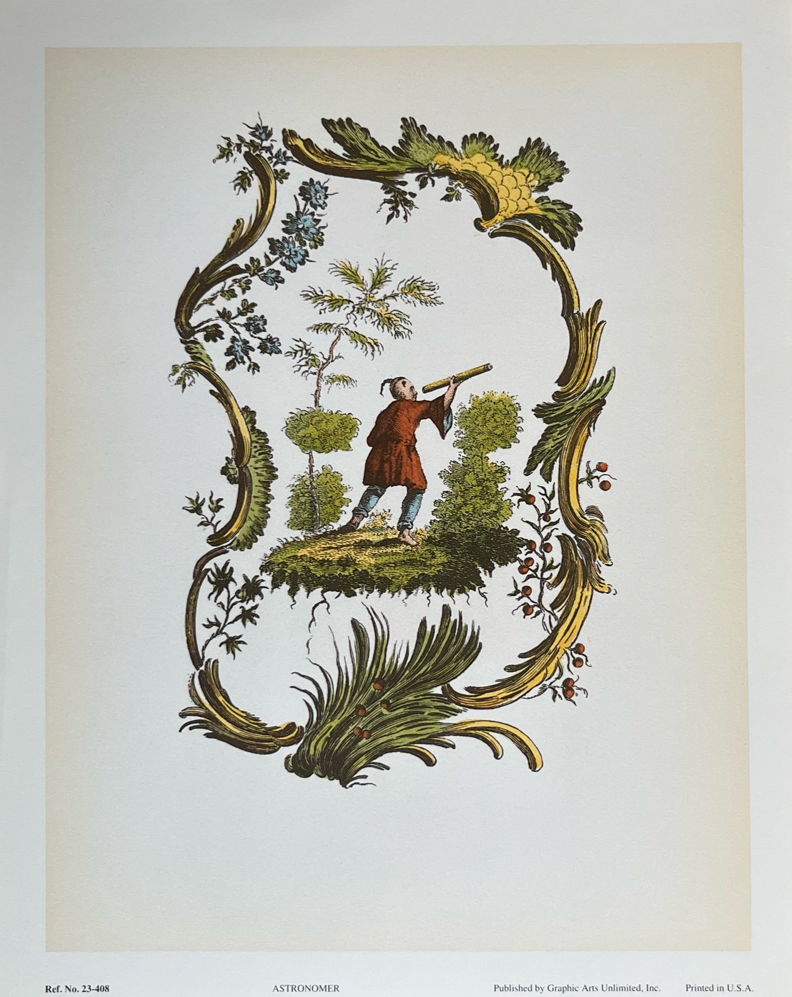 The "Astronomer" print is an 8 x 10 print. The artist is unknown. This vibrant print was published by Graphic Arts Unlimited, Inc. Printed in U.S.A.