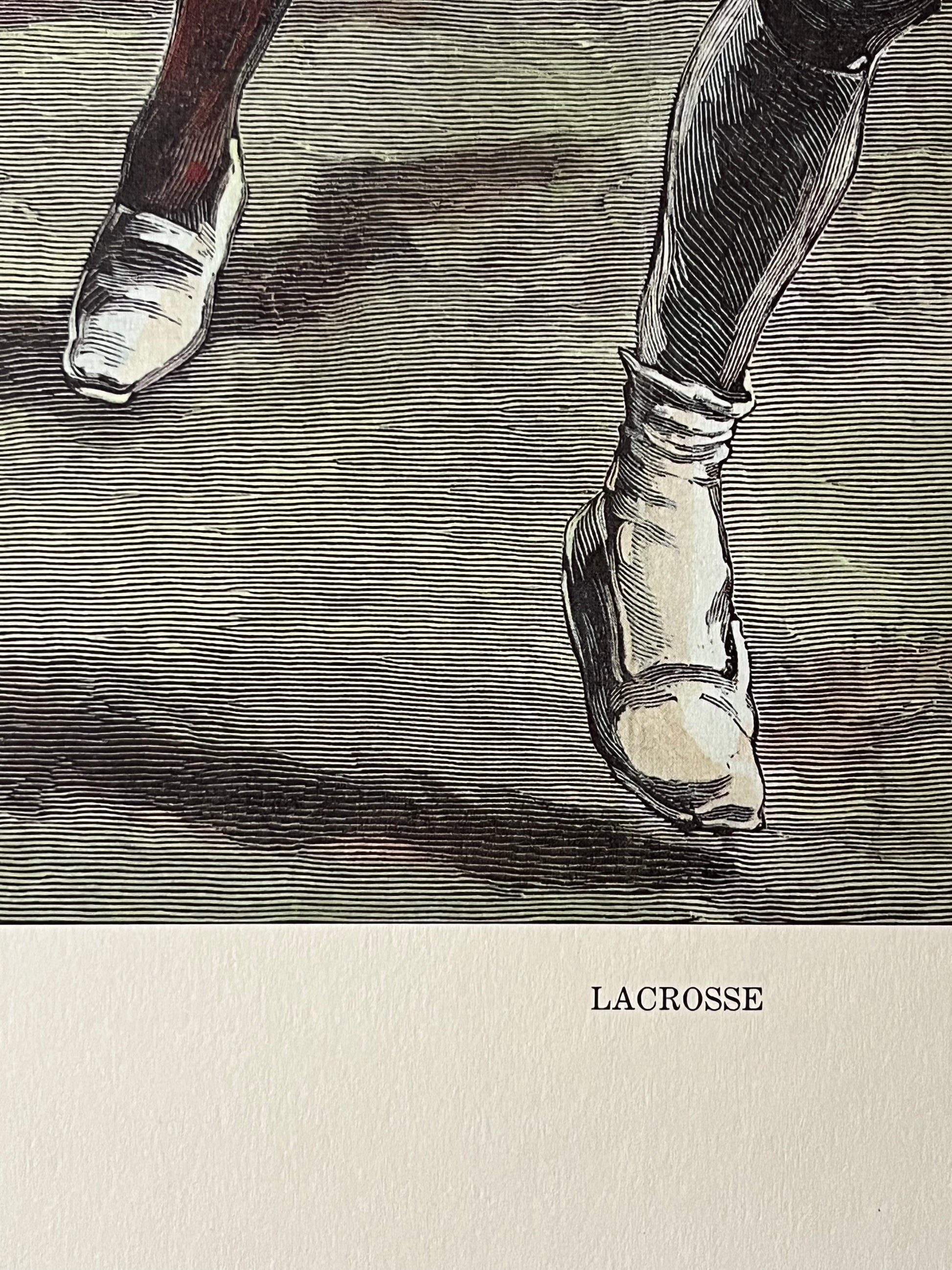 Lacrosse "Hard Pressed" art print was published by Harper's Weekly in New York (c 1886). The original art was by T. de Thulstrup who was an American illustrator. This print is 24 x 20 with a matte finish, unframed.