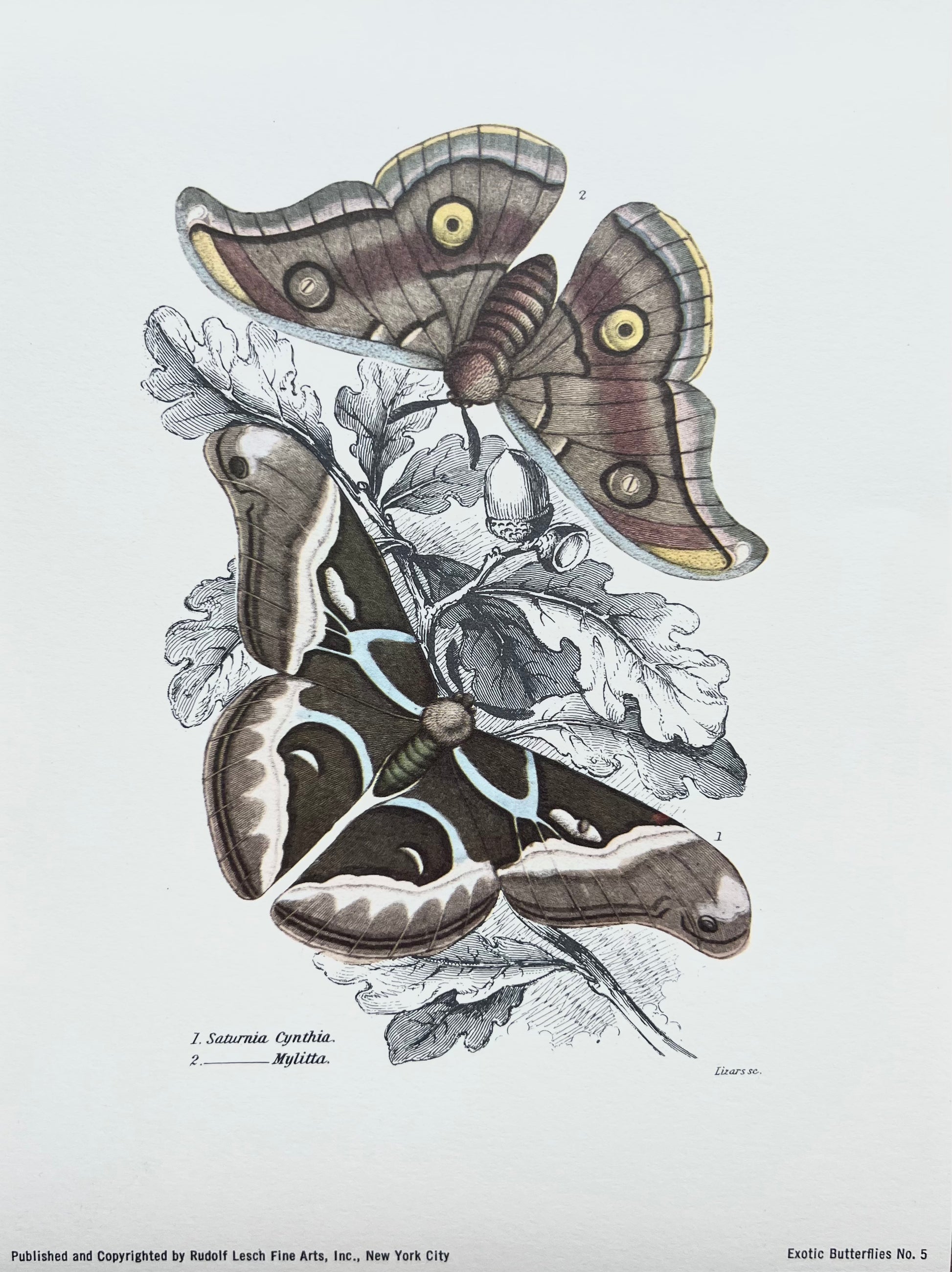 Mini Print, Saturnia cynthia & Saturnia mylitta, 20th century print after James Duncan