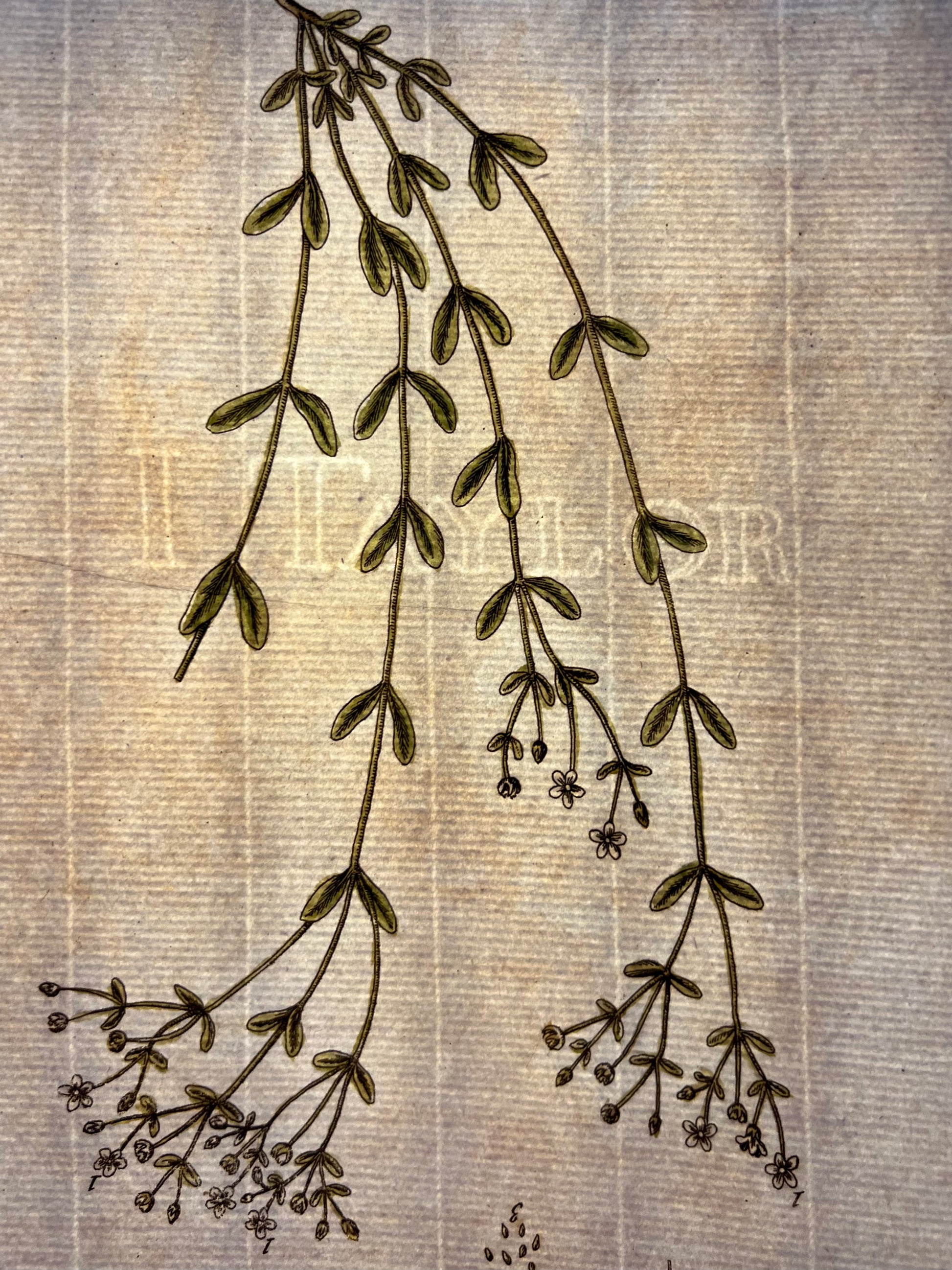 Purging Flax, Plate #368, From Elizabeth Blackwell's 'A Curious Herbal'. This is a hand-colored engraving, on woven paper. This is a hand-colored engraving on watermarked "I TAYLOR" paper. Circa 1770-1790.
