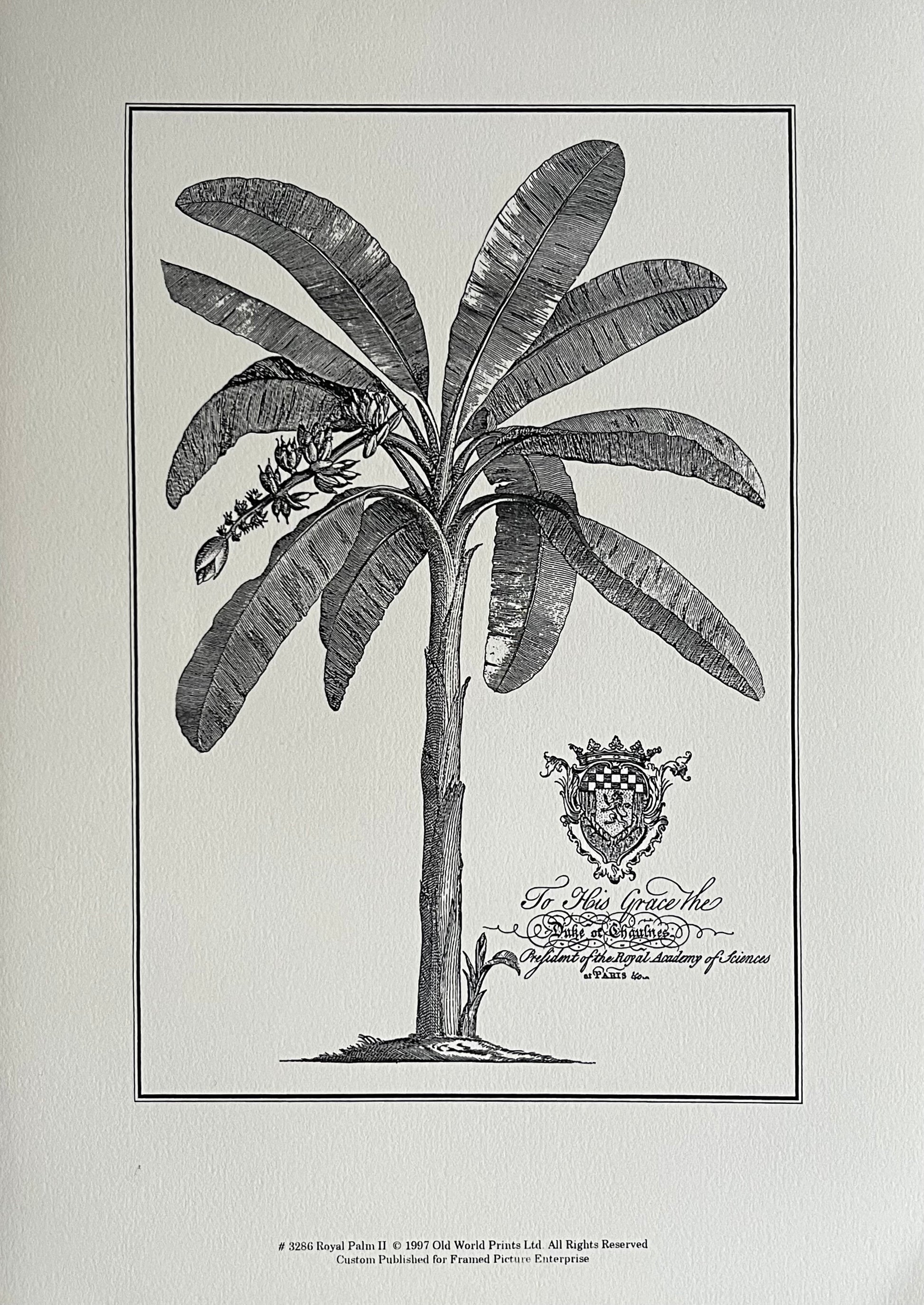 The Royal Palm II print artwork was originally by Georg Ehret (c. 1700s). This 1997 print on heavy stock paper is 12 x 16 3/4 with a matte finish, unframed.
