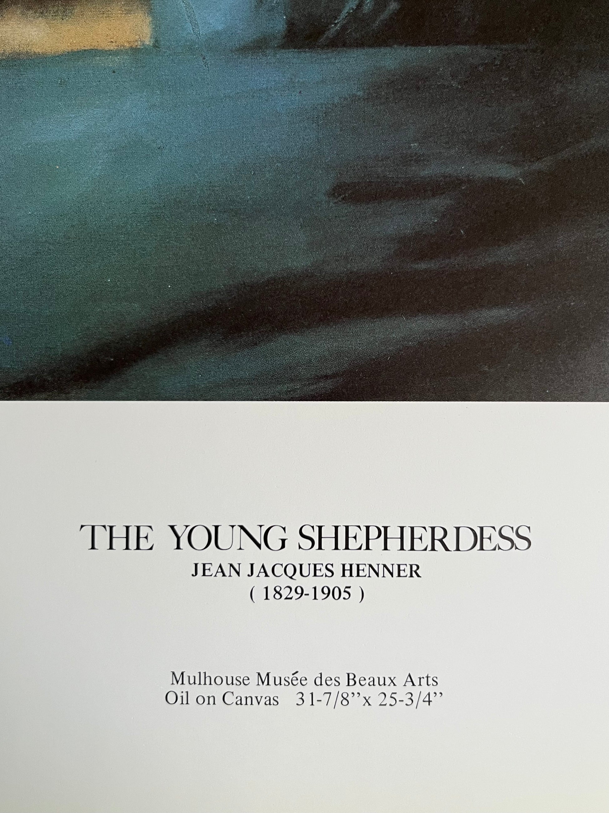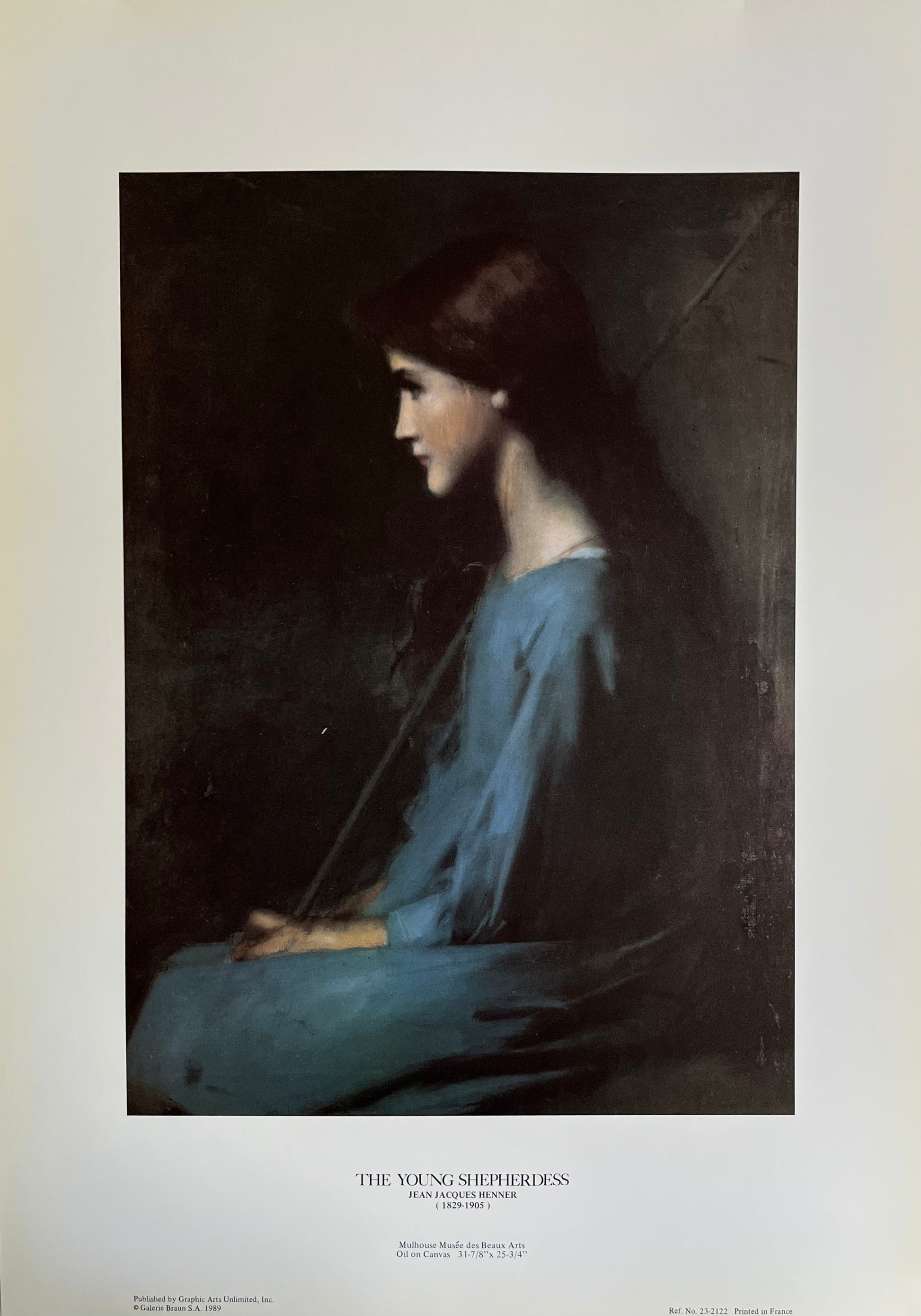 "The Young Shepherdess" is a print of a 19th century work of art by Jean-Jacques Henner. This print is 15 3/8 x 21 3/4, unframed.